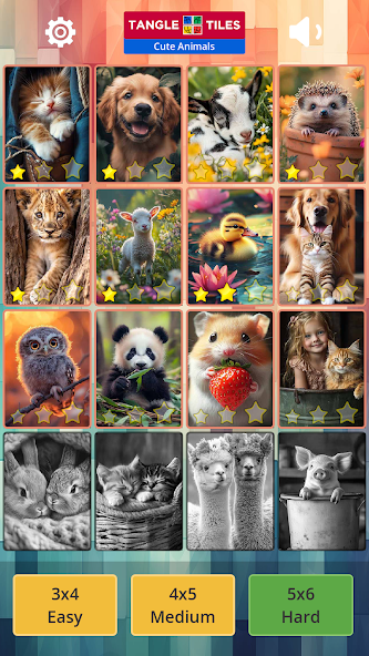 Eine Familie von Schiebe-Puzzle-Apps mit gemeinsamer Engine. Jedes Set hat eigenes Thema, eigene Motive und eigene Schwierigkeitsgrade (3×4, 4×5, 5×6).